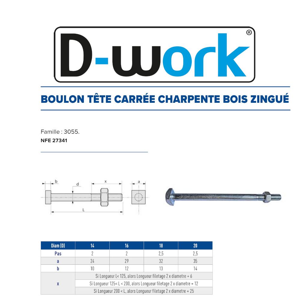 25 Boulons à Tête Carrée 14x375 mm – Zingué Blanc, Norme NFE 27341 – Fixation Sécurisée et Durable - LENNIE