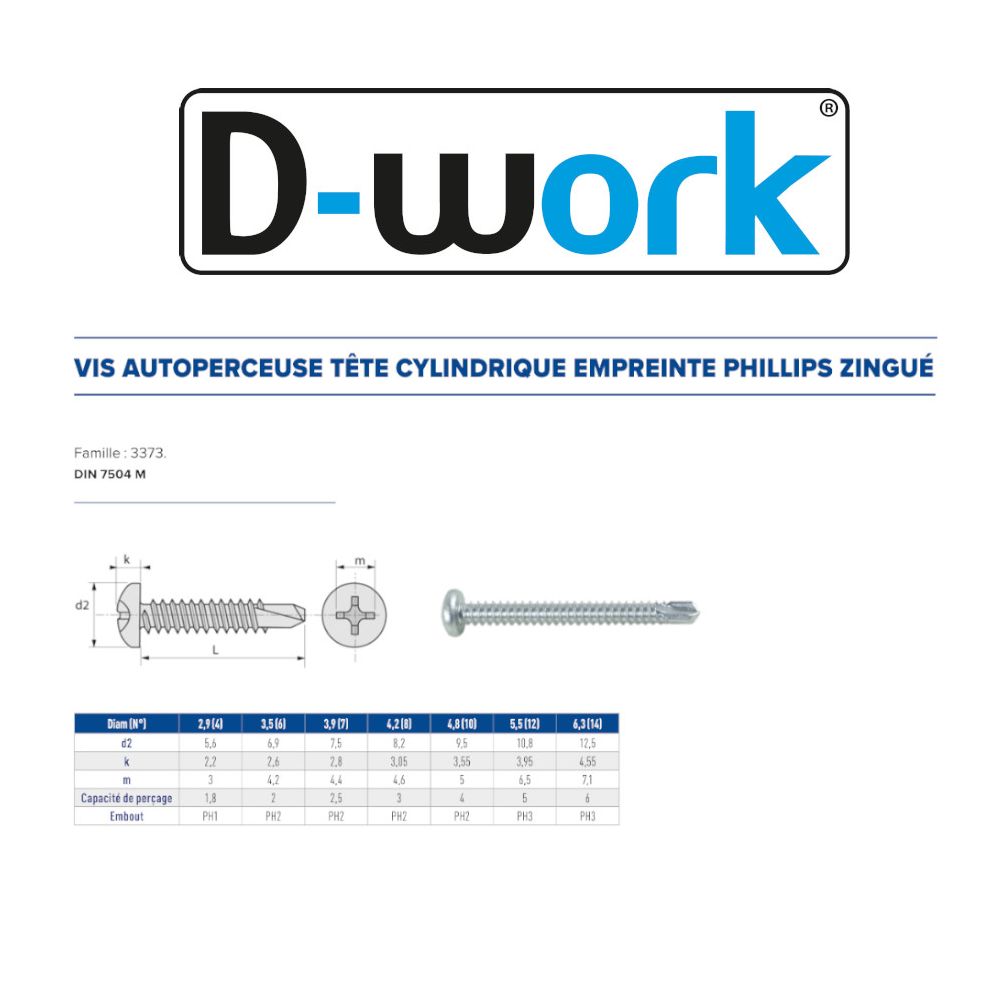 250 Vis Autoperceuse TC 4.8x38 mm – Zingué Blanc, Norme DIN 7504 M – Fixation Rapide et Efficace - LENNIE