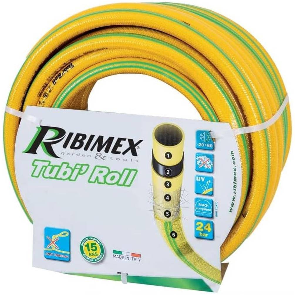 Tuyau d'Arrosage Antivrille 25M Ø15 mm – Jaune, Résistant et Flexible – Idéal pour Jardinage - RIBIMEX