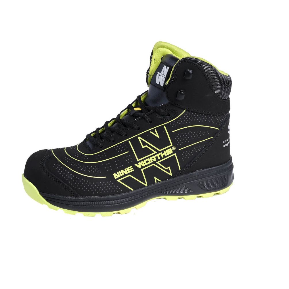 Chaussures Montantes de Sécurité Strike - Taille 45 - Noir/Jaune Fluo - NINE WORTHS
