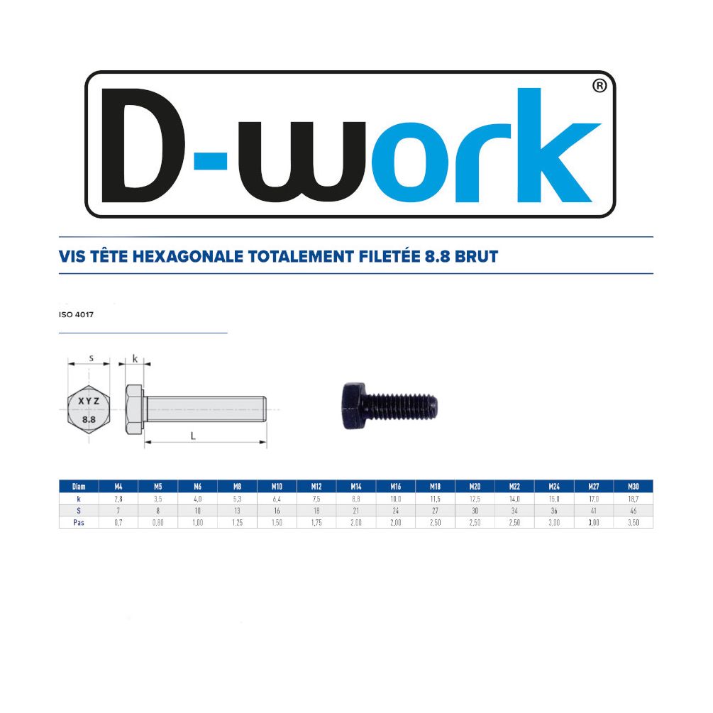10 Vis Tête Fraisée Filetées 30x80 mm - Acier CL8.8 Brut - Fixation Solide et Durable - D-Work