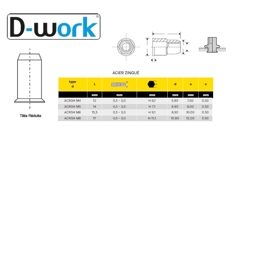 200 Écrous à Sertir Crantés M8-17 - Acier Traitement GOSERT ACRC - Fixation Sécurisée et Durable - D-Work