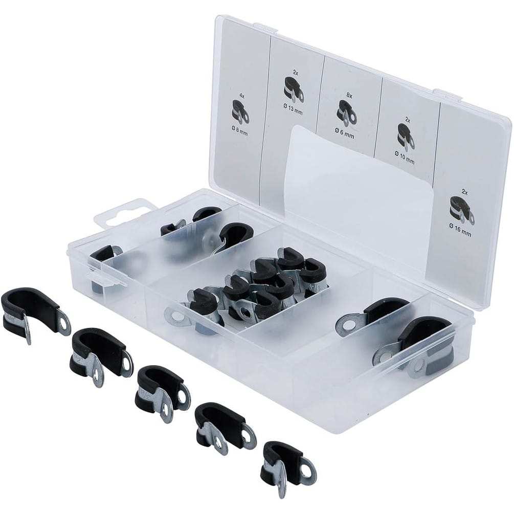 Assortiment de 18 Colliers de Tuyau à Revêtement Caoutchouc - Ø6 à 16 mm - Protection et Fixation Fiable - BGS