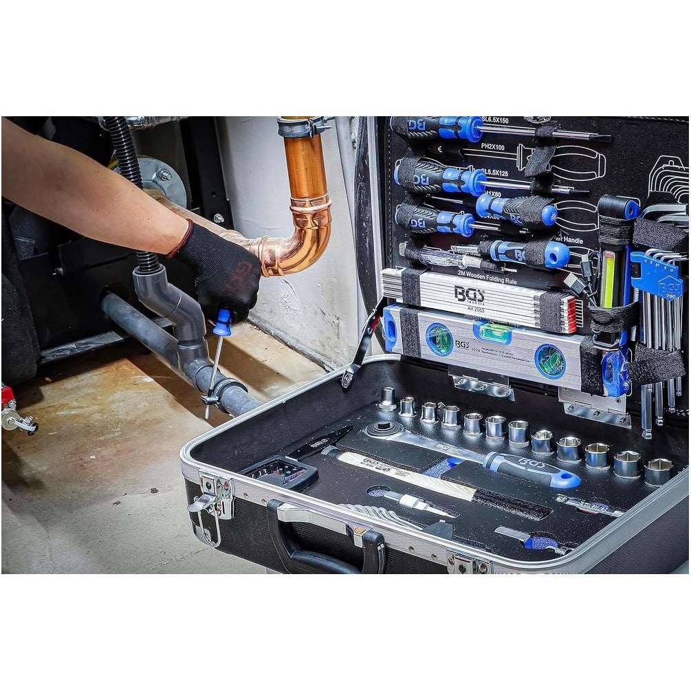 Caisse à Outils Sanitaire 95 Pièces - Dimensions 48x38x18 cm - Matériel Complet et Résistant - BGS