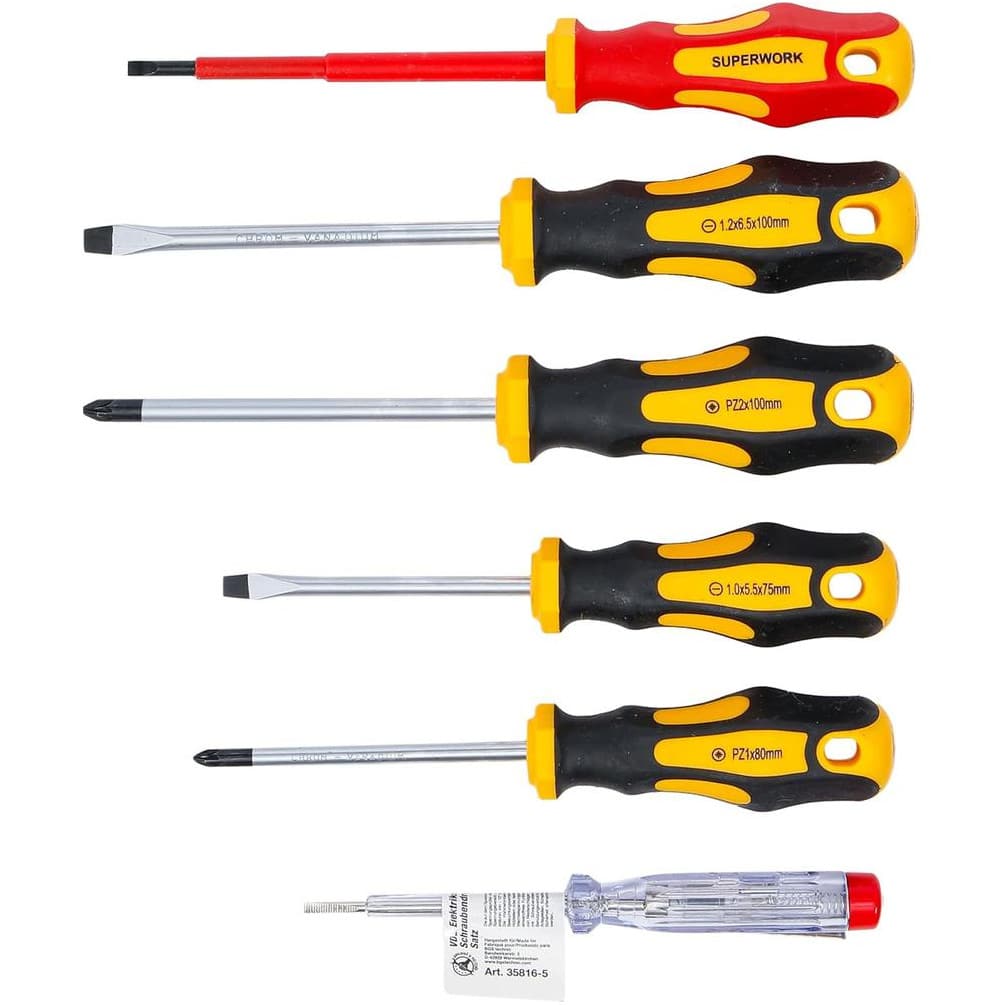 Jeu de Tournevis VDE pour Électricien 6 Pièces - Plats et Cruciformes - Isolation Sécurisée et Précision - BGS