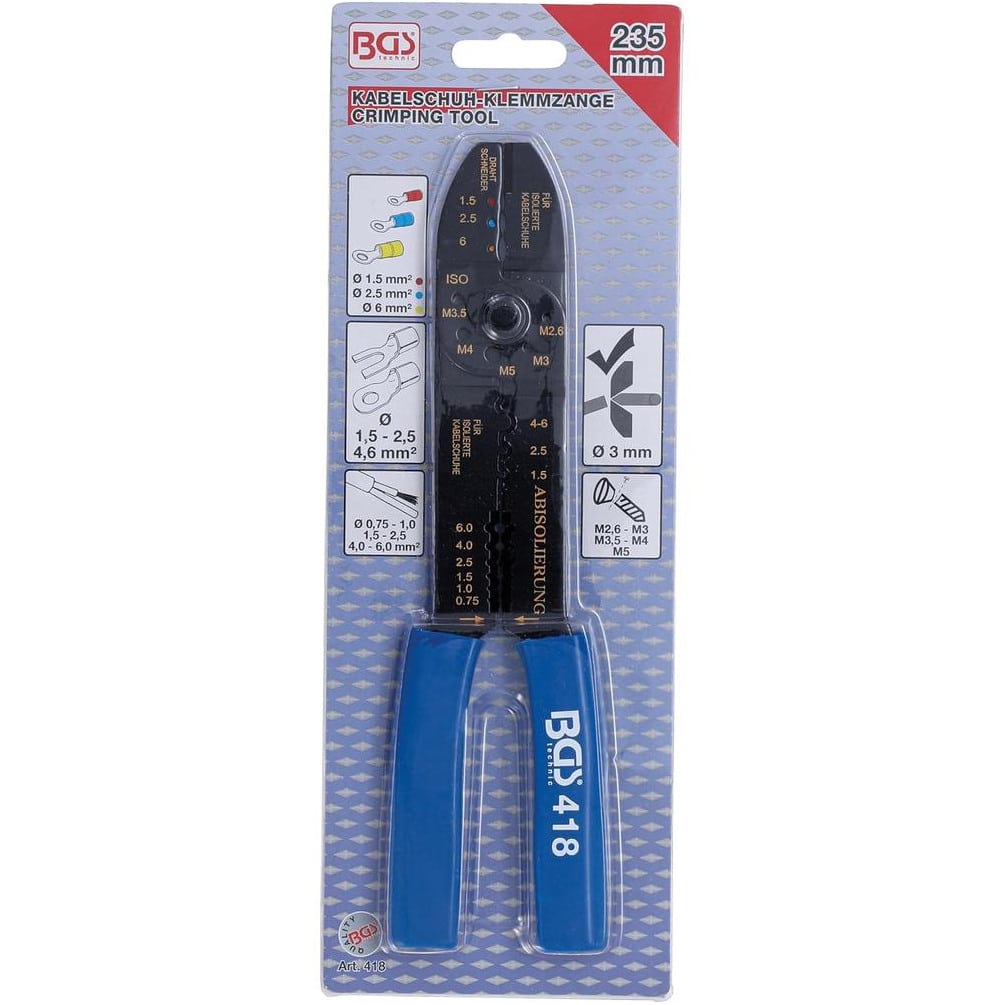 Pince à Sertir et Dénuder avec Cliquet - 0,5-6 mm - Pour Cosses Non Isolées - Précision et Confort d Utilisation - BGS