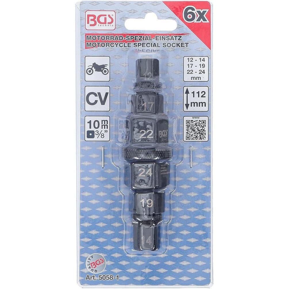Douilles Spéciales Moto 10 mm (3/8 ) - 17, 19, 22, 24 mm - Acier Résistant - Entretien et Réparation Faciles - BGS