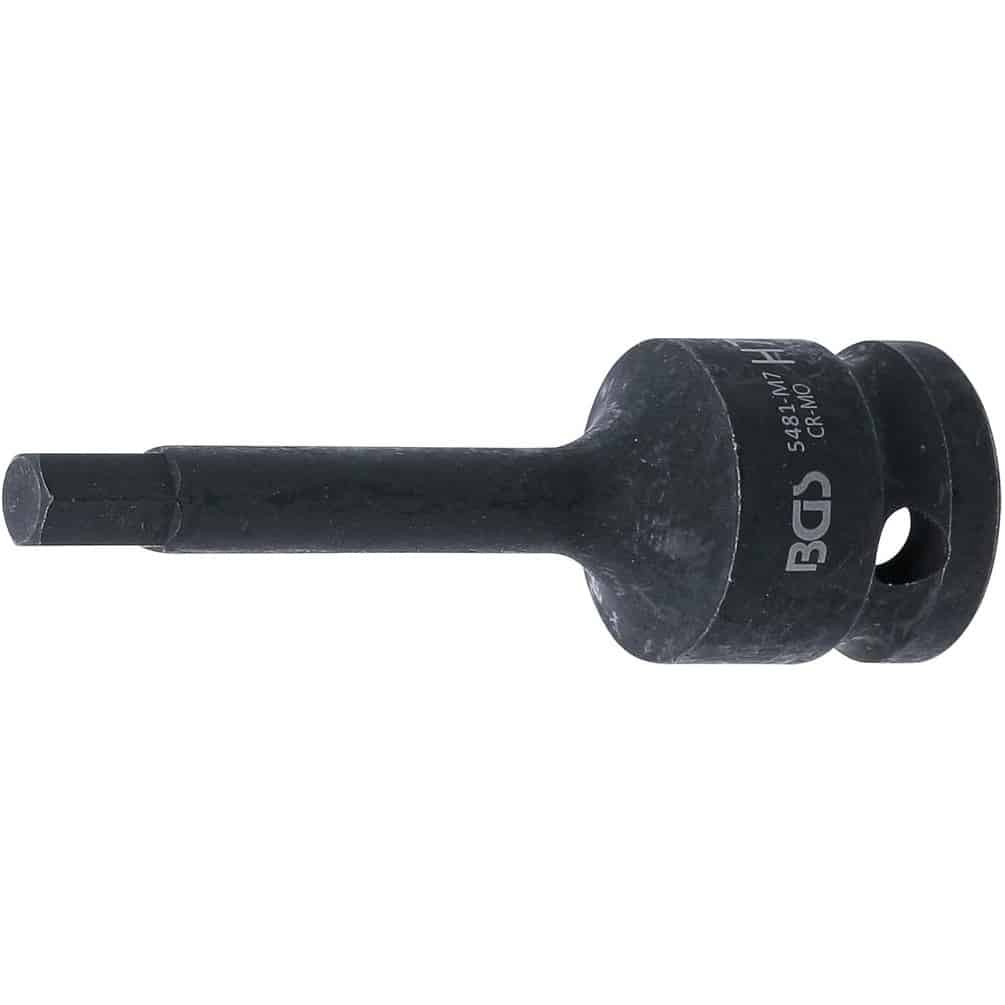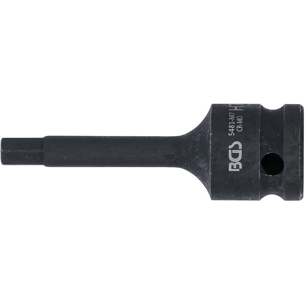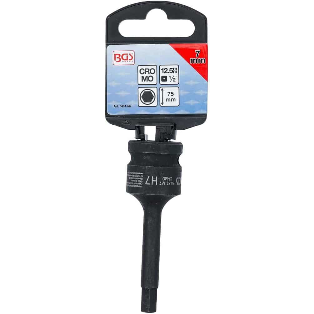 Douille à Embouts à Choc 75 mm - 12,5 mm (1/2 ), Six Pans Intérieurs 7 mm - Résistante et Précise - BGS