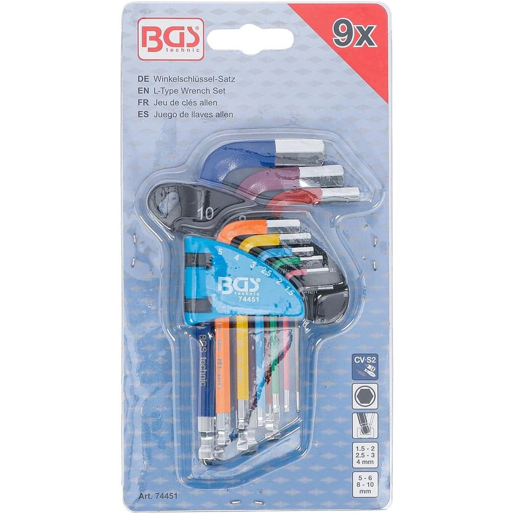 Jeu de Clés Allen Multicolore 9 Pièces - Six Pans Femelle 1,5 à 10 mm - Précision et Polyvalence - BGS