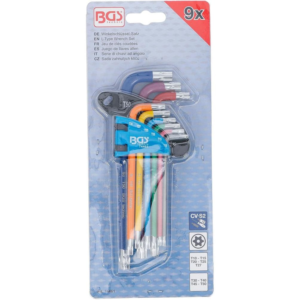 Jeu de Clés Allen Multicolore - 9 Pièces T10 à T50 Profil Torx Perçage - Précision et Polyvalence - BGS
