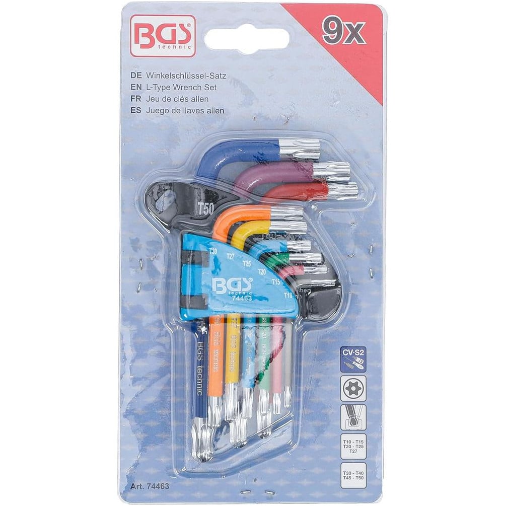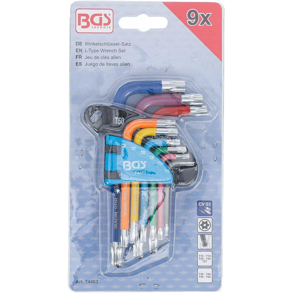 Jeu de Clés Allen Courtes 9 Pièces - Profil T Torx T10-T50, Multicolore, Tête Sphérique - Précision et Polyvalence - BGS