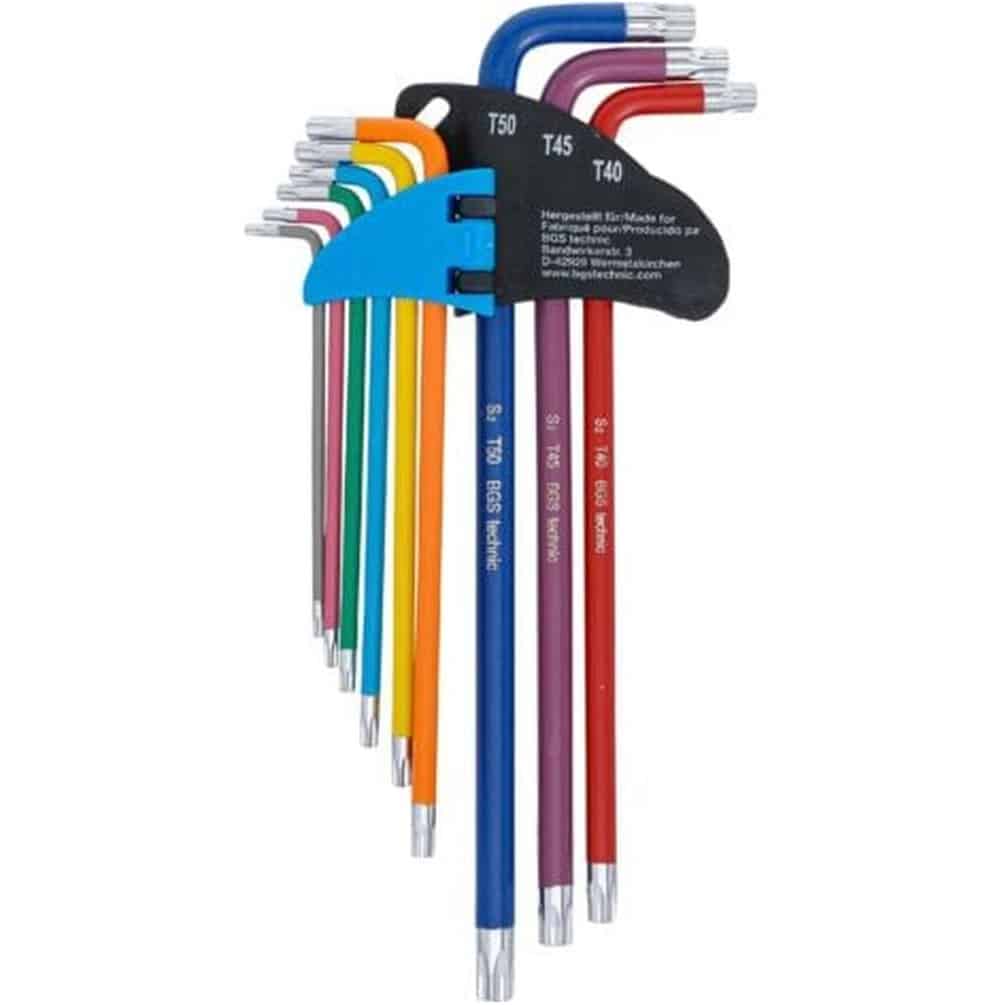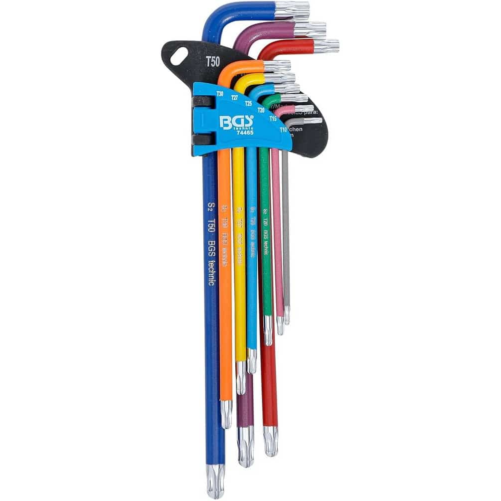 Jeu de Clés Allen Multicolore - 9 Pièces Extra Longues T10-T50 - Profil T Torx avec Perçage et Tête Sphérique - Précision - BGS