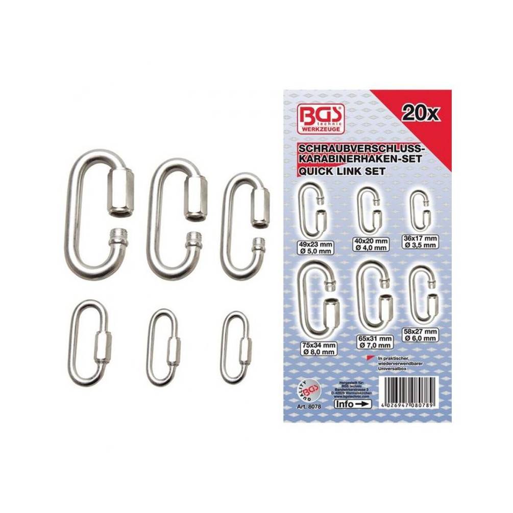 Assortiment de 20 Mousquetons à Visser - Acier, Résistants et Pratiques - BGS