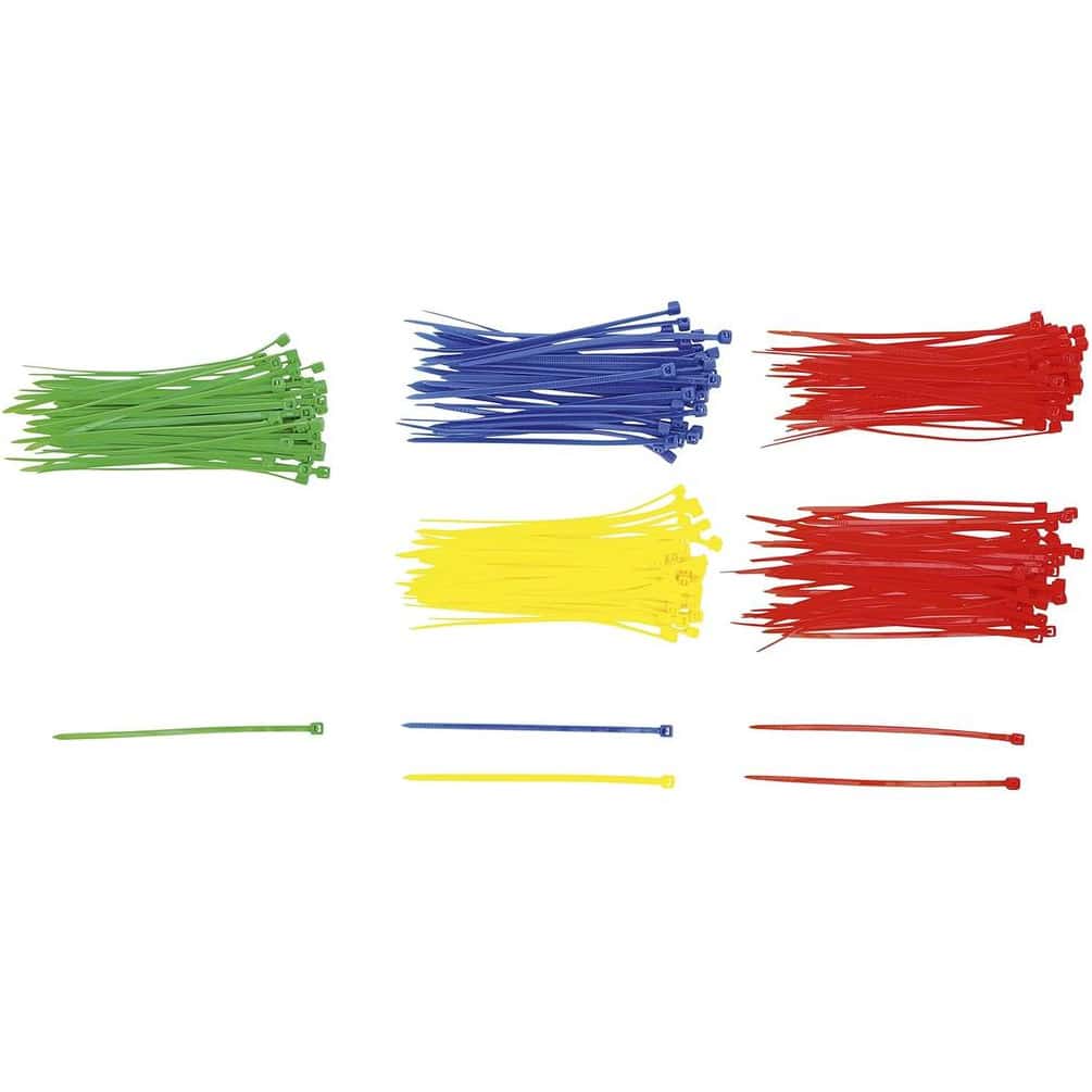 Assortiment de Colliers Plastique Multicolore 2,4 x 100 mm - 200 Pièces - Fixation Pratique et Polyvalente - BGS
