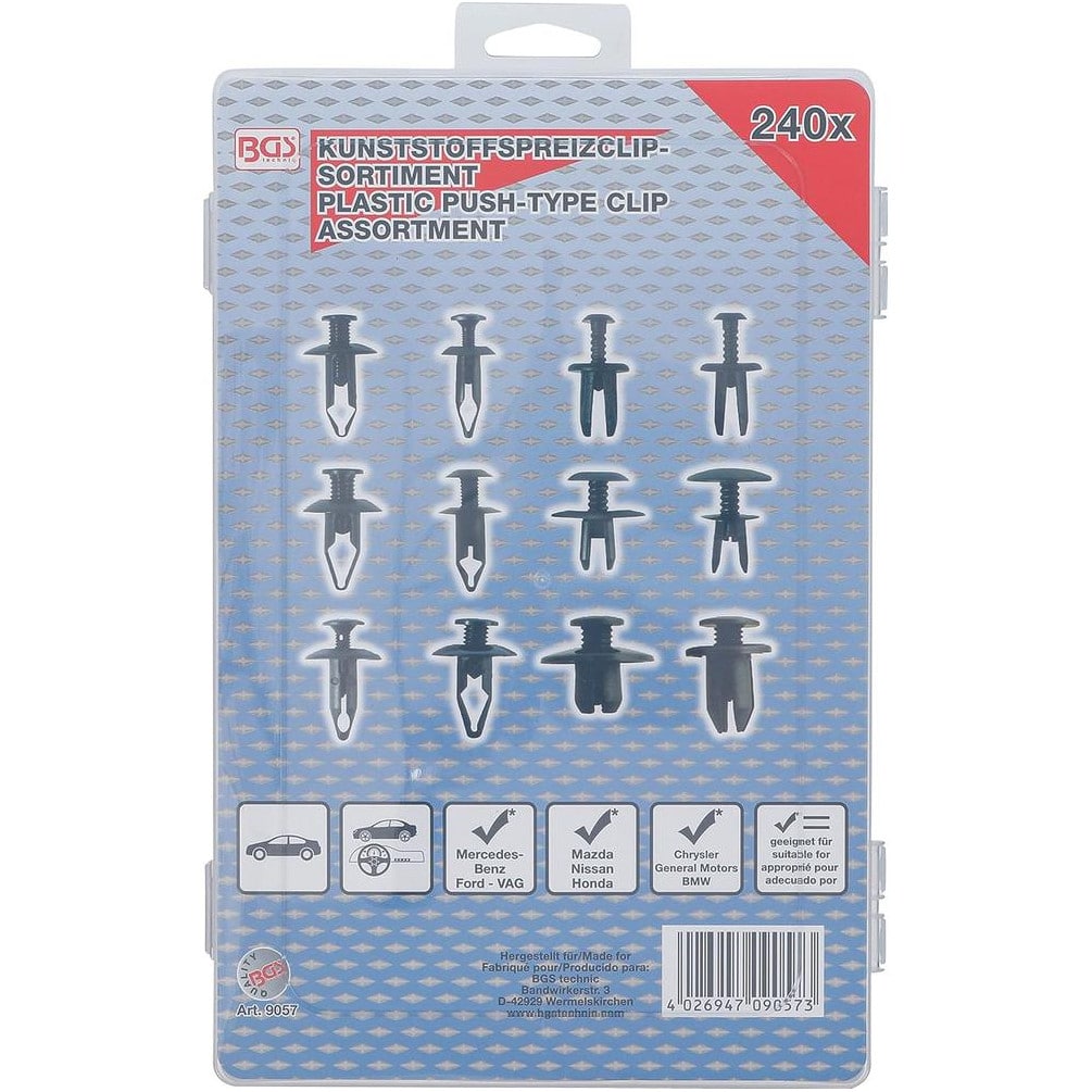 Assortiment de Chevilles d’Écartement 240 pièces - Compatible Mazda, Honda, Ford, Nissan, VW - Polyvalent et Pratique pour - BGS