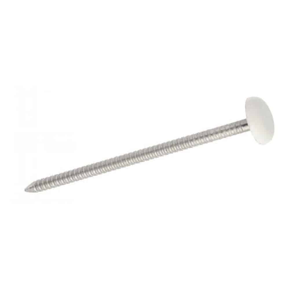 Pointe annelée tête bombée plastifiée blanche 2,1x30 mm - Inox A4 - Résistante et anticorrosion - ACTON
