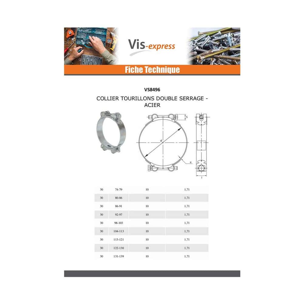 10 Colliers de serrage à deux oreilles 17-20 mm - W1 - Acier galvanisé - ACTON