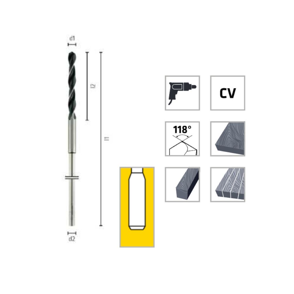 Foret Hélicoïdal Pour Bois HSS Ø8 mm Long. Tot. 117 mm Long. Coupe 75 mm - Profi Holz - Usage Machine - ALPEN-MAYKESTAG