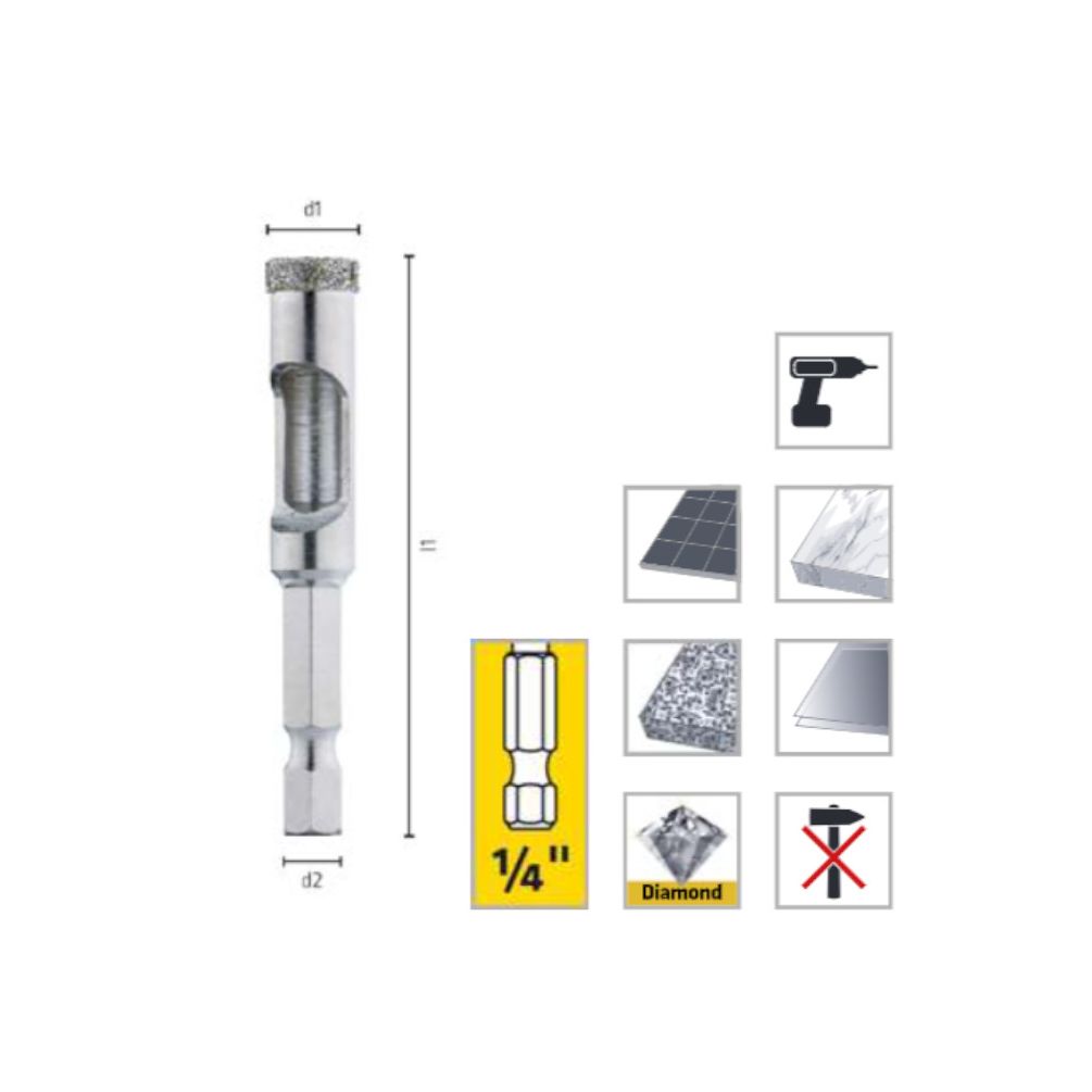 Foret Diamant Pour Carrelages Ø12 mm - Longueur Totale 60 mm - Gabarit De Perçage Inclus - ALPEN-MAYKESTAG