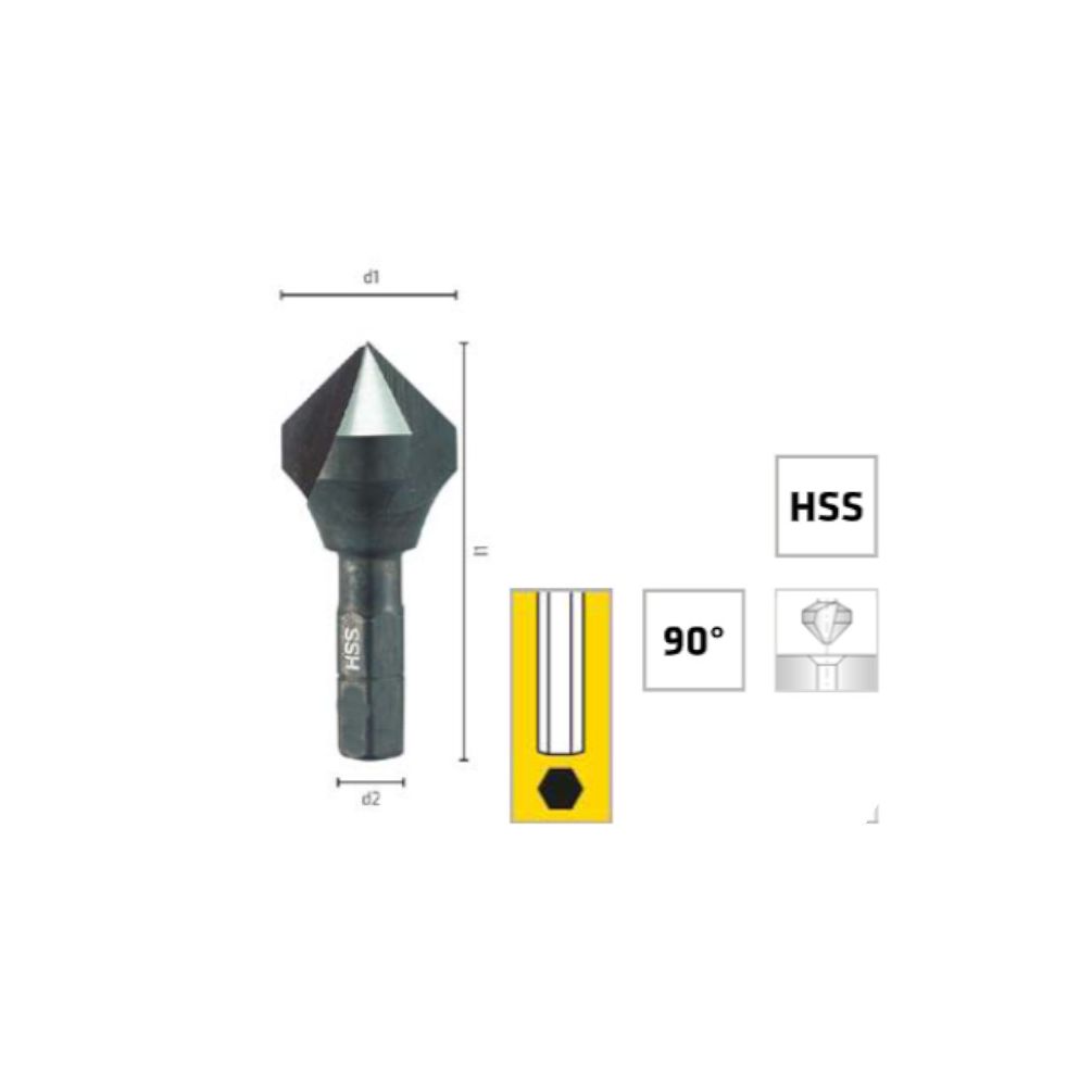 Fraise Conique à Ébavurer 90° HSS Ø12,4 mm - Emmanchement Hexagonal 1/4 - Longueur Totale 35 mm - ALPEN-MAYKESTAG