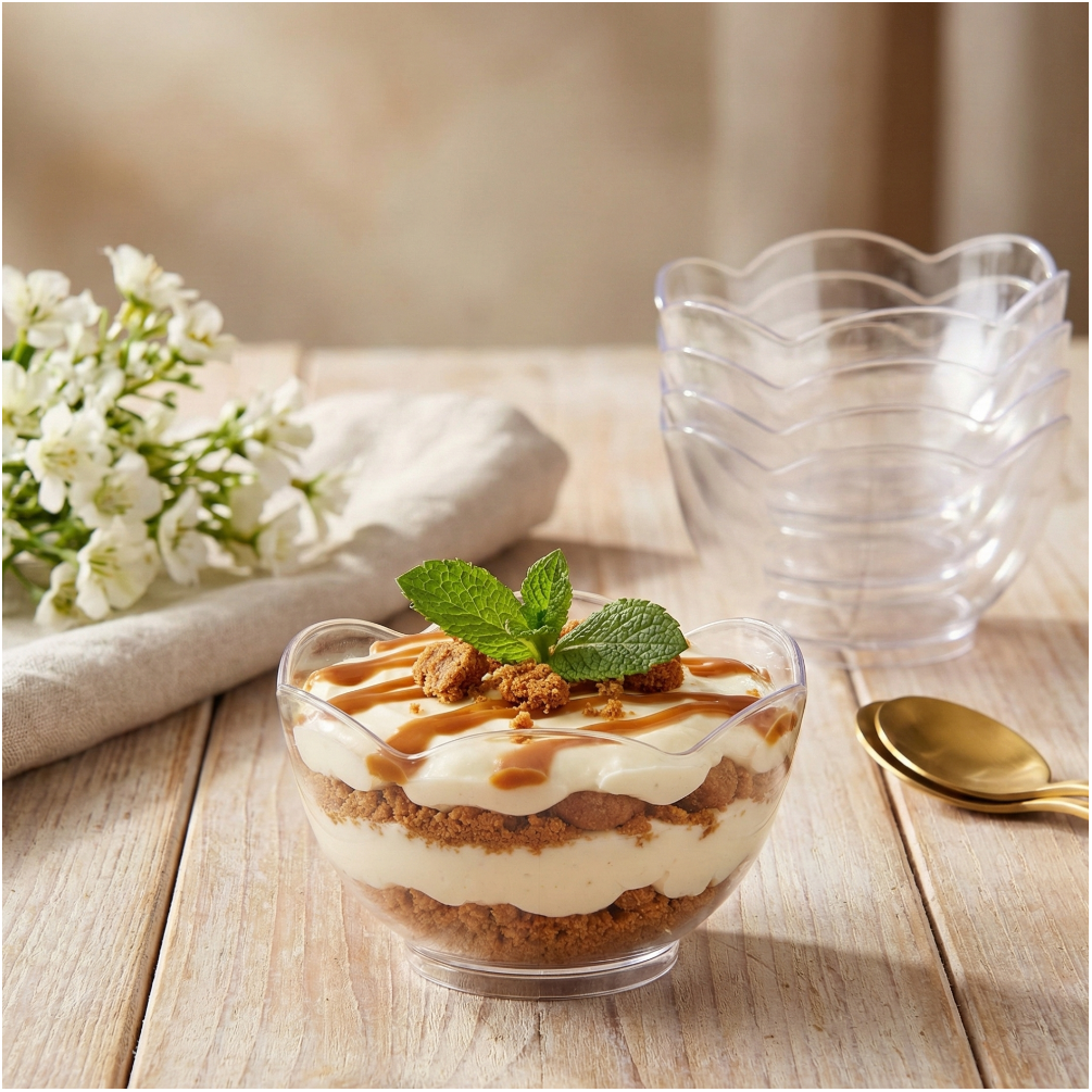 Grazie alla loro resistenza al calore fino a 70°C, queste verrine sono facili da pulire in lavastoviglie e offrono una manutenzione semplice ed efficace per un utilizzo senza stress.