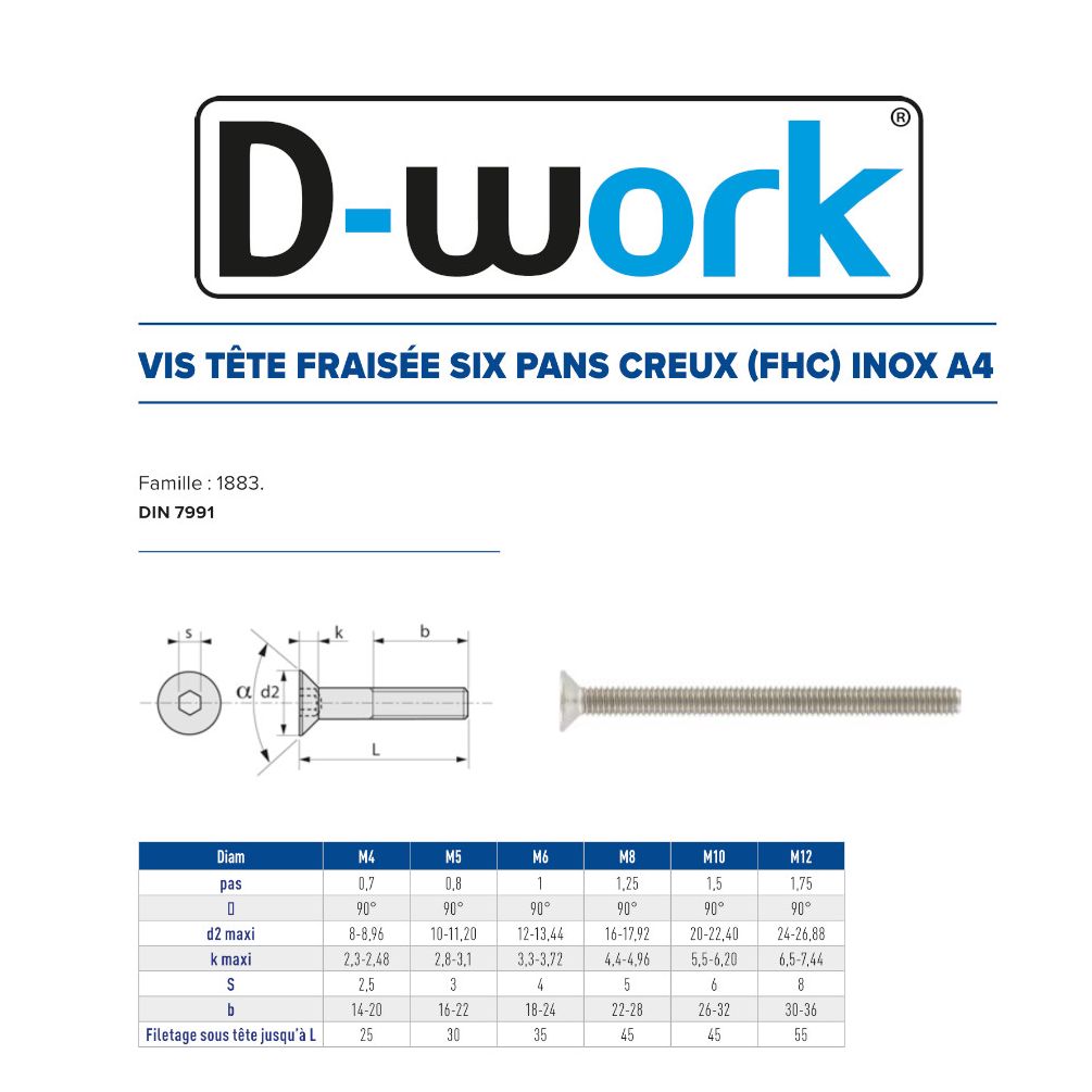100 Vis à Tête Fraisée 6x30 mm - Inox A4L80, Norme DIN 7991 - Résistantes et Durables - D-Work