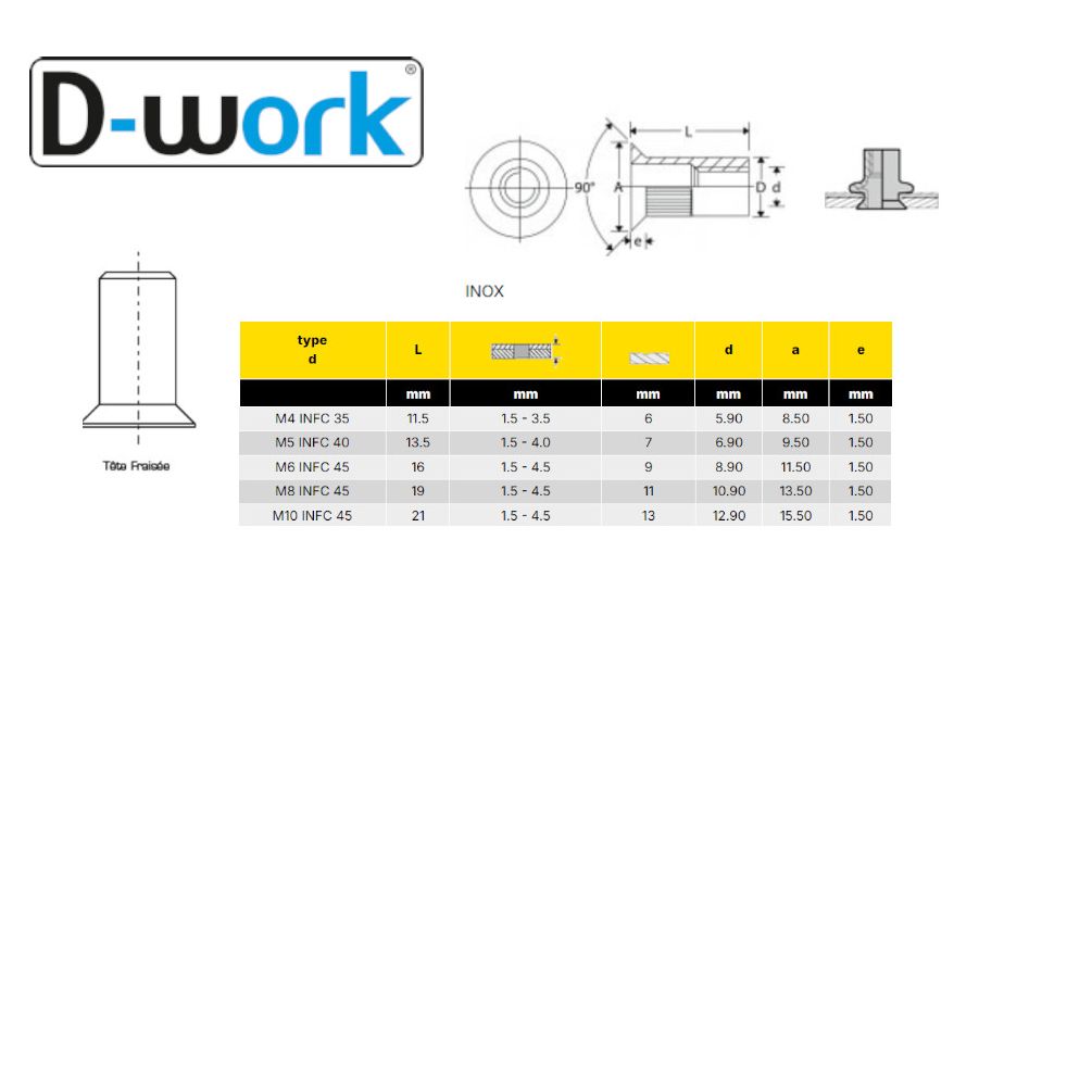 100 Écrous à Sertir Crantés Inox M10-21 - Fixation Durable et Résistante - D-Work