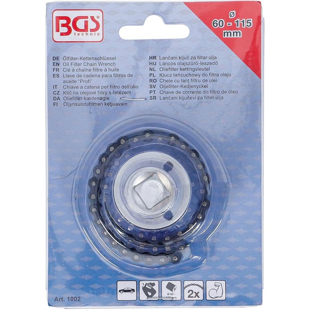Clé à Chaîne Filtre à Huile Profi - Ø60-115 mm - Acier Robuste - Démontage Facile et Sécurisé - BGS