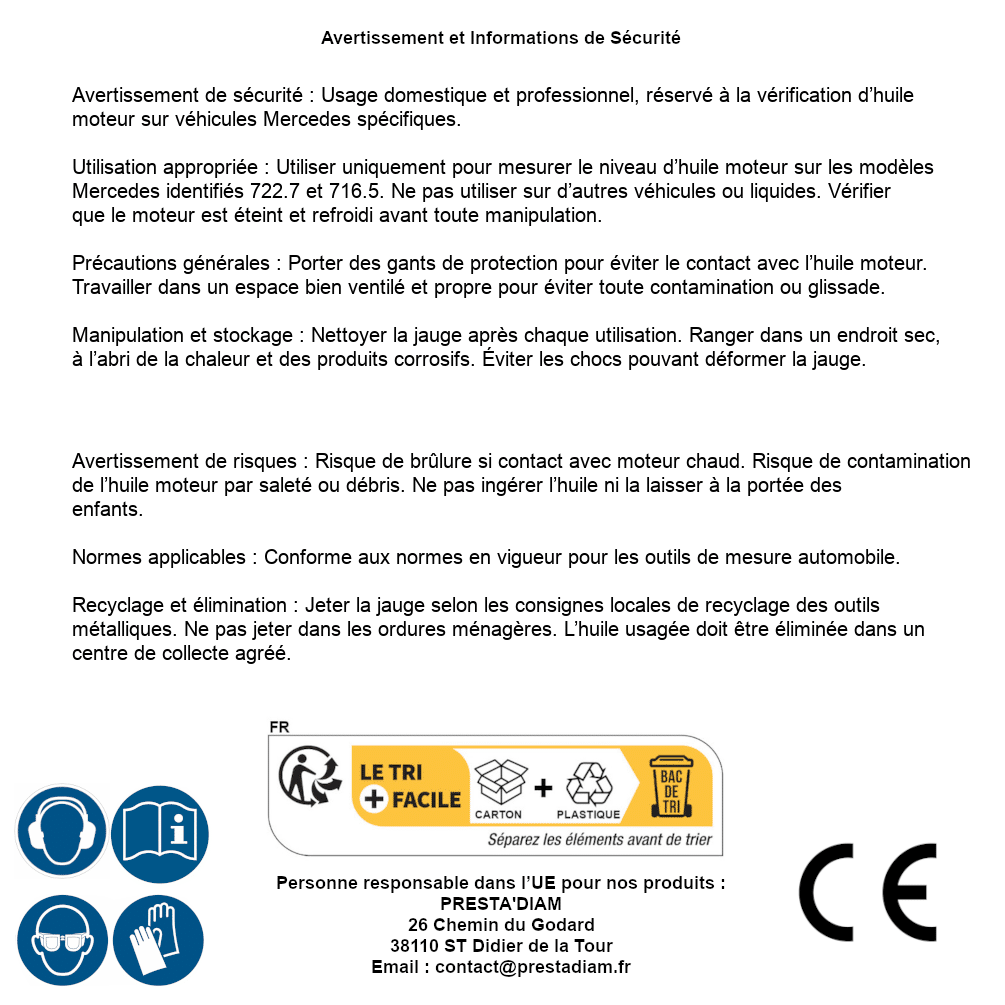 | Persona responsabile UE | PRESTA'DIAM 26 Chemin du Godard 38110 ST Didier de la Tour Email : contact@prestadiam.fr |