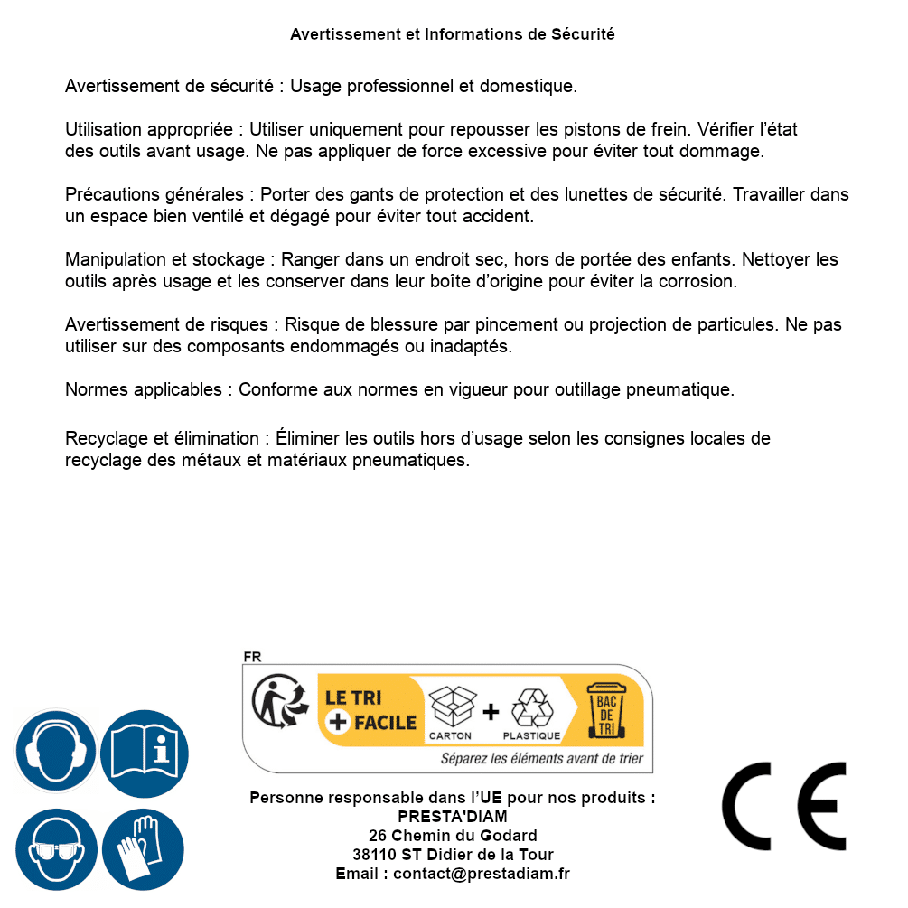 | Persona responsabile UE | PRESTA'DIAM 26 Chemin du Godard 38110 ST Didier de la Tour Email : contact@prestadiam.fr |
