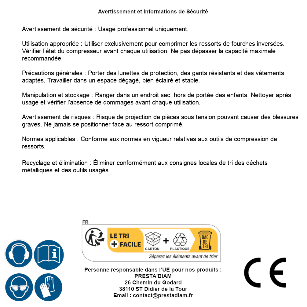 | Persona responsabile UE | PRESTA'DIAM 26 Chemin du Godard 38110 ST Didier de la Tour Email : contact@prestadiam.fr |