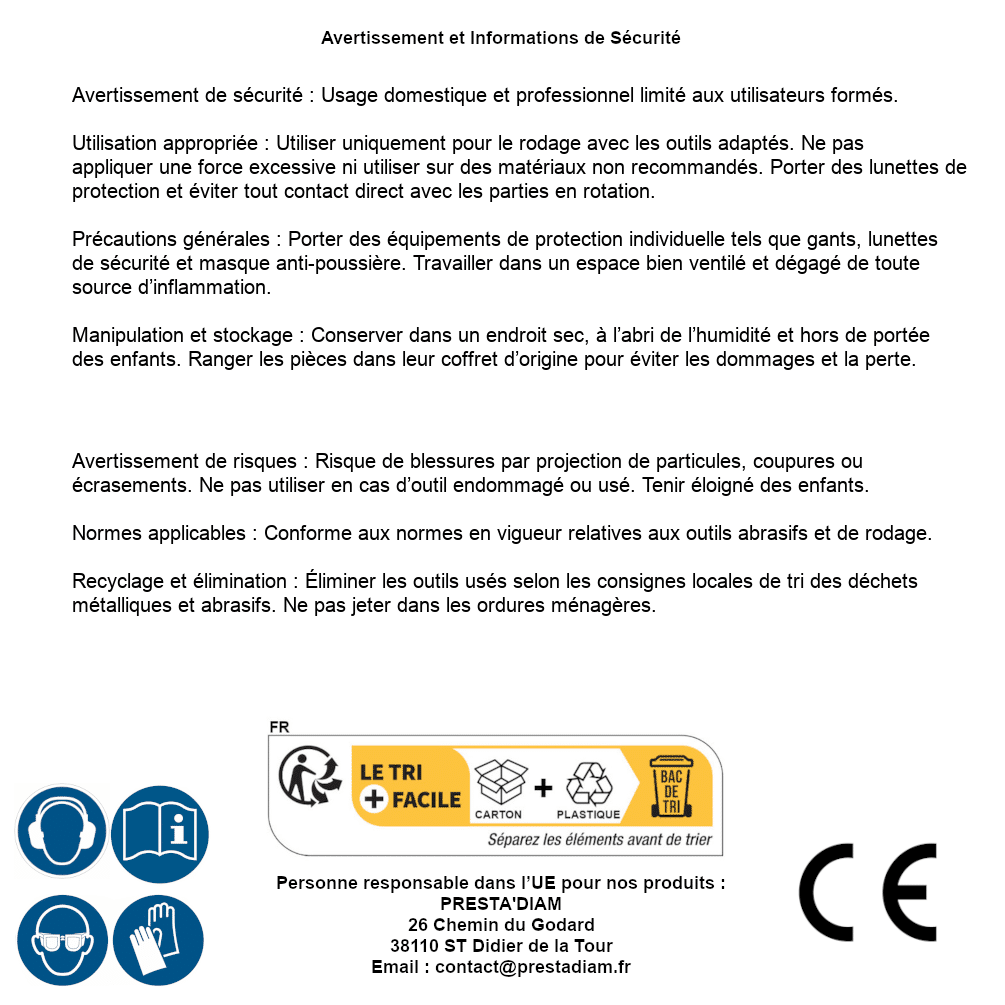 | Persona responsabile UE | PRESTA'DIAM 26 Chemin du Godard 38110 ST Didier de la Tour Email : contact@prestadiam.fr |