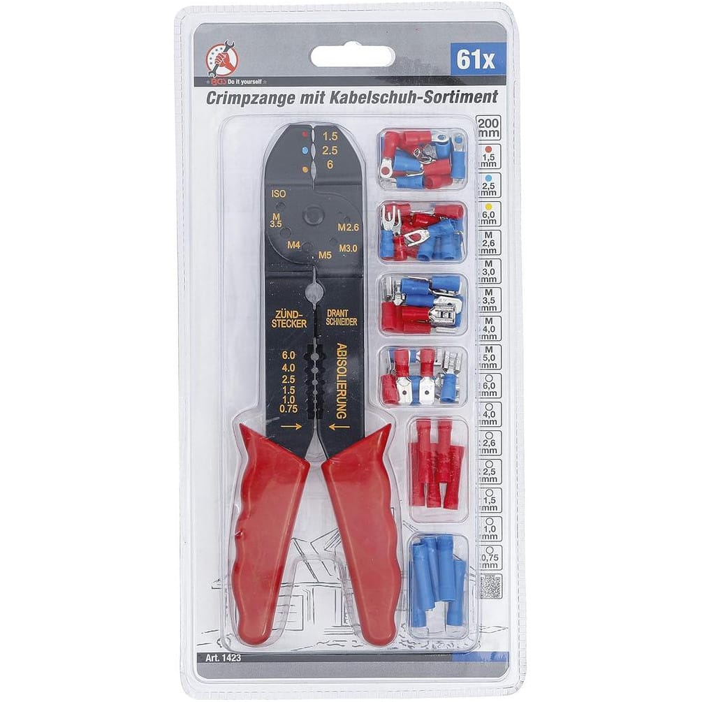 Pince à Sertir 200 mm - Assortiment 61 Pièces de Cosses de Câble - Précision et Polyvalence - - BGS