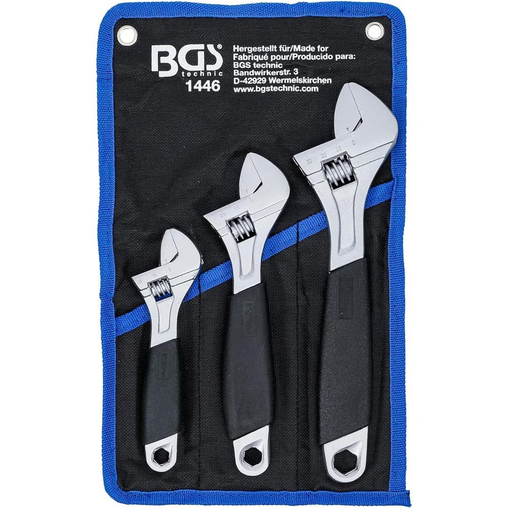 Jeu de Clés à Molette 3 Pièces - Poignée Plastique - Ajustables et Pratiques pour Bricolage - BGS