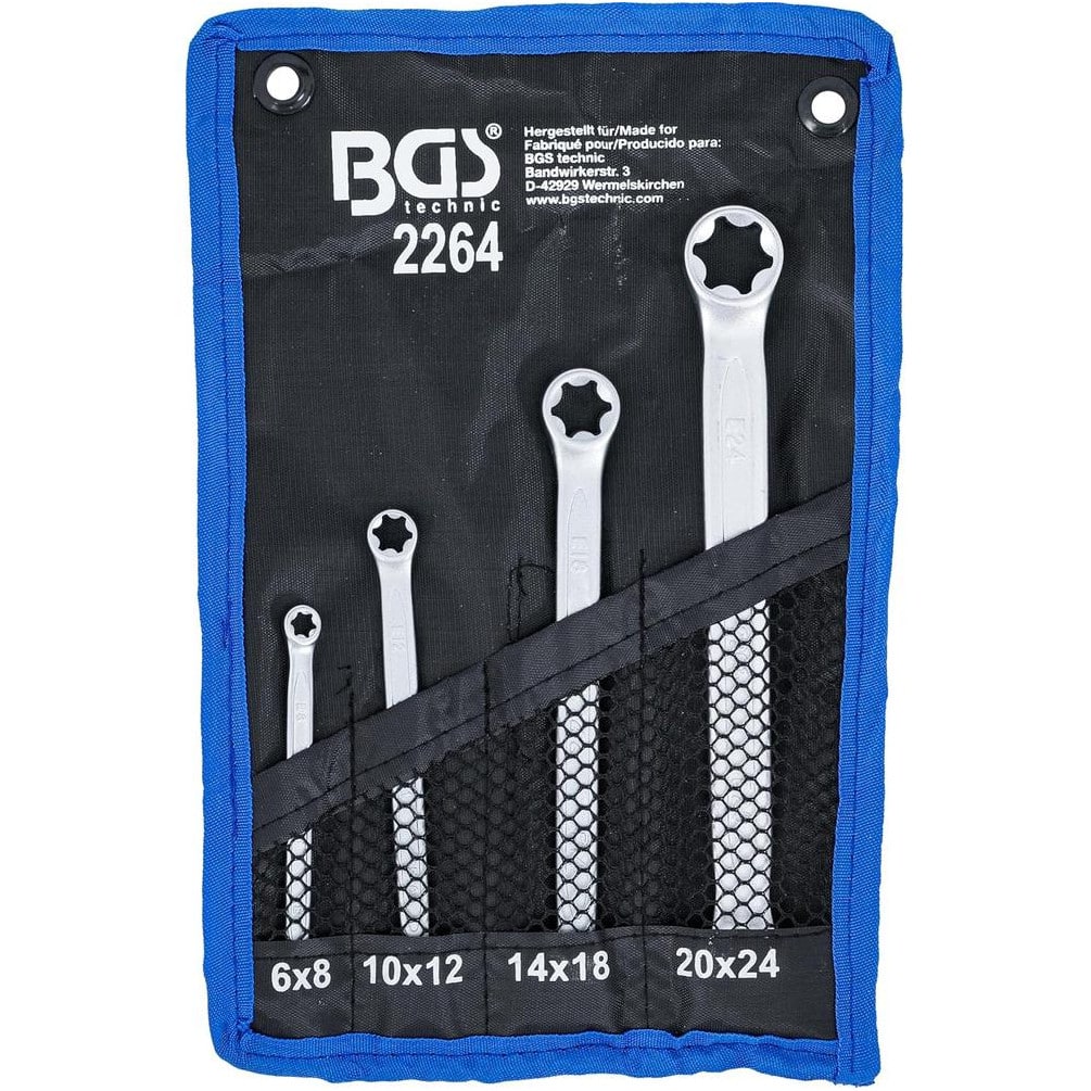 Jeu de Clés à Œil Doubles Profil E6-E8 à E20-E24 - 4 Pièces - Acier Résistant - Précision et Durabilité - BGS