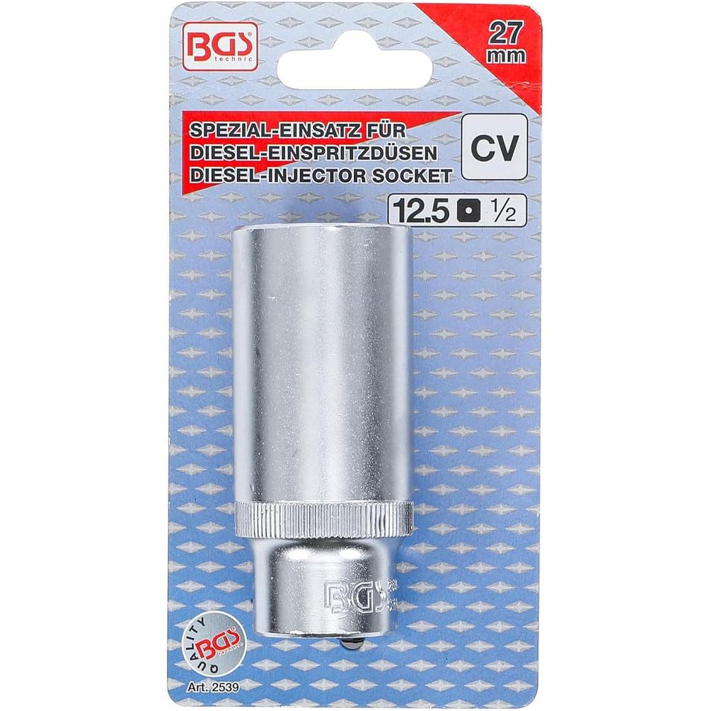 Douille pour Clé à Douille Injecteurs Diesel 12,5 mm (1/2 ) 27 mm - Acier Résistant - Précision et Durabilité - BGS