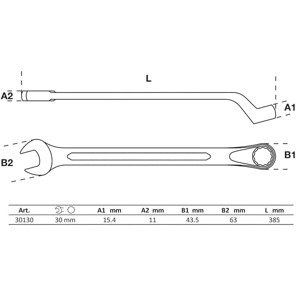 Clé Mixte Coudée 30 mm - Acier Résistant - Prise et Maniabilité Optimales - BGS