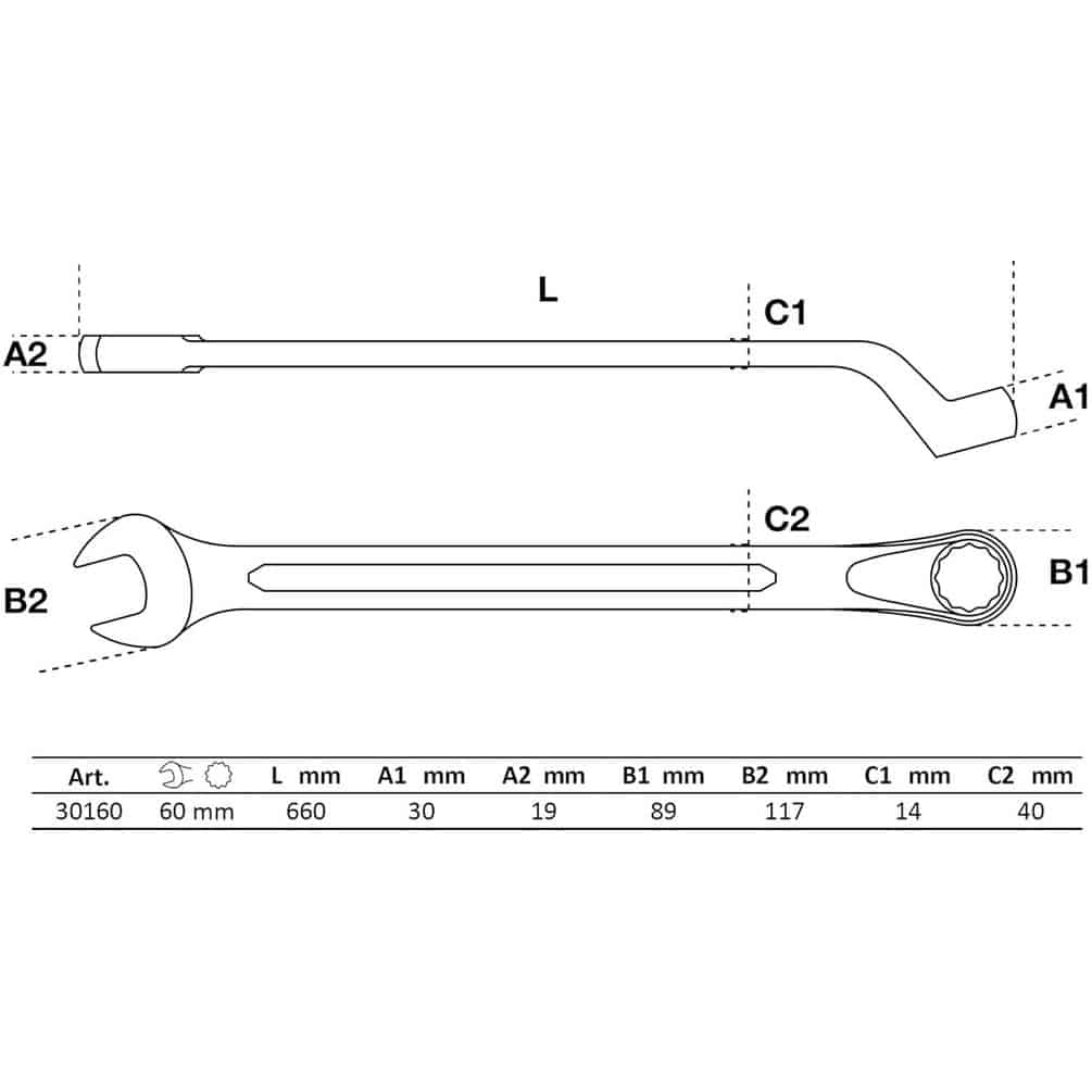 Clé Mixte Coudée 60 mm - Acier Résistant - Prise et Maniabilité Optimales - BGS