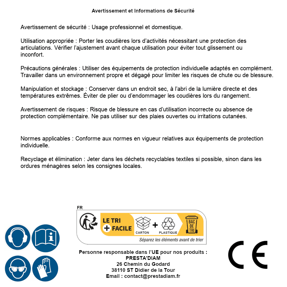 | Persona responsabile UE | PRESTA'DIAM 26 Chemin du Godard 38110 ST Didier de la Tour Email : contact@prestadiam.fr |
