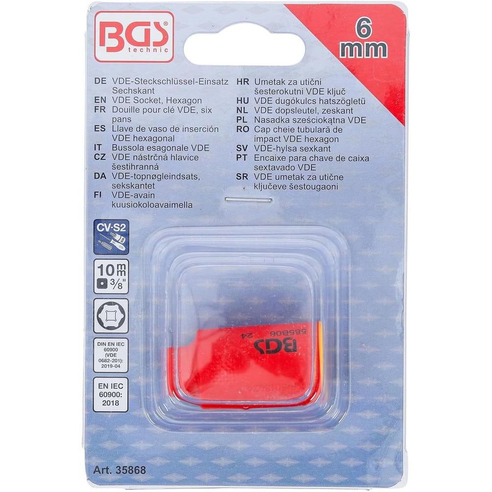 Douille pour Clé VDE Six Pans 10 mm (3/8 ) - 6 mm - Sécurité et Précision - - BGS