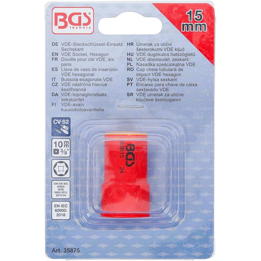 Douille pour Clé VDE Six Pans 10 mm (3/8 ) - 15 mm - Sécurité Électrique et Précision - - BGS