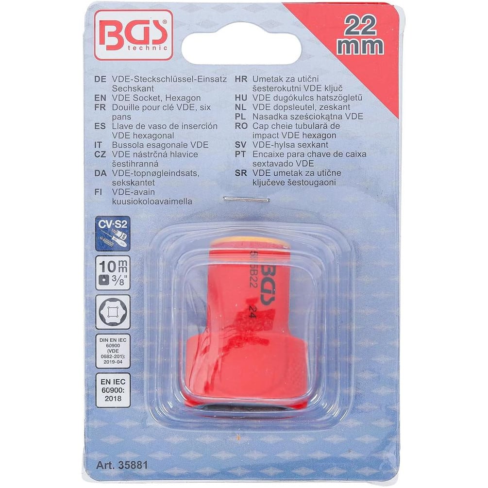 Douille pour Clé VDE Six Pans 10 mm (3/8 ) - 22 mm - Isolation Sécurisée et Précision - BGS