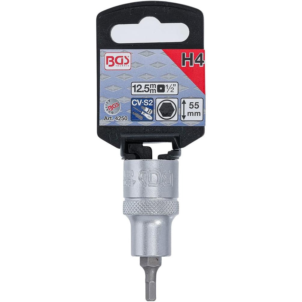 Douille à Embouts 12,5 mm (1/2 ) - Six Pans Intérieurs 4 mm - Précision et Robustesse - BGS