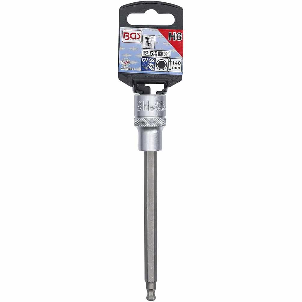 Douille à Embouts 140 mm - 12,5 mm (1/2 ) Six Pans Intérieurs avec Tête Sphérique 6 mm - Précision et Polyvalence - BGS