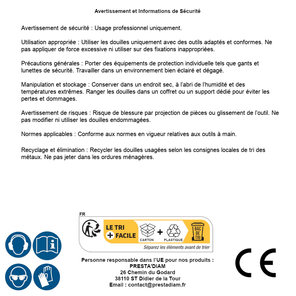 | Persona responsabile UE | PRESTA'DIAM 26 Chemin du Godard 38110 ST Didier de la Tour Email : contact@prestadiam.fr |