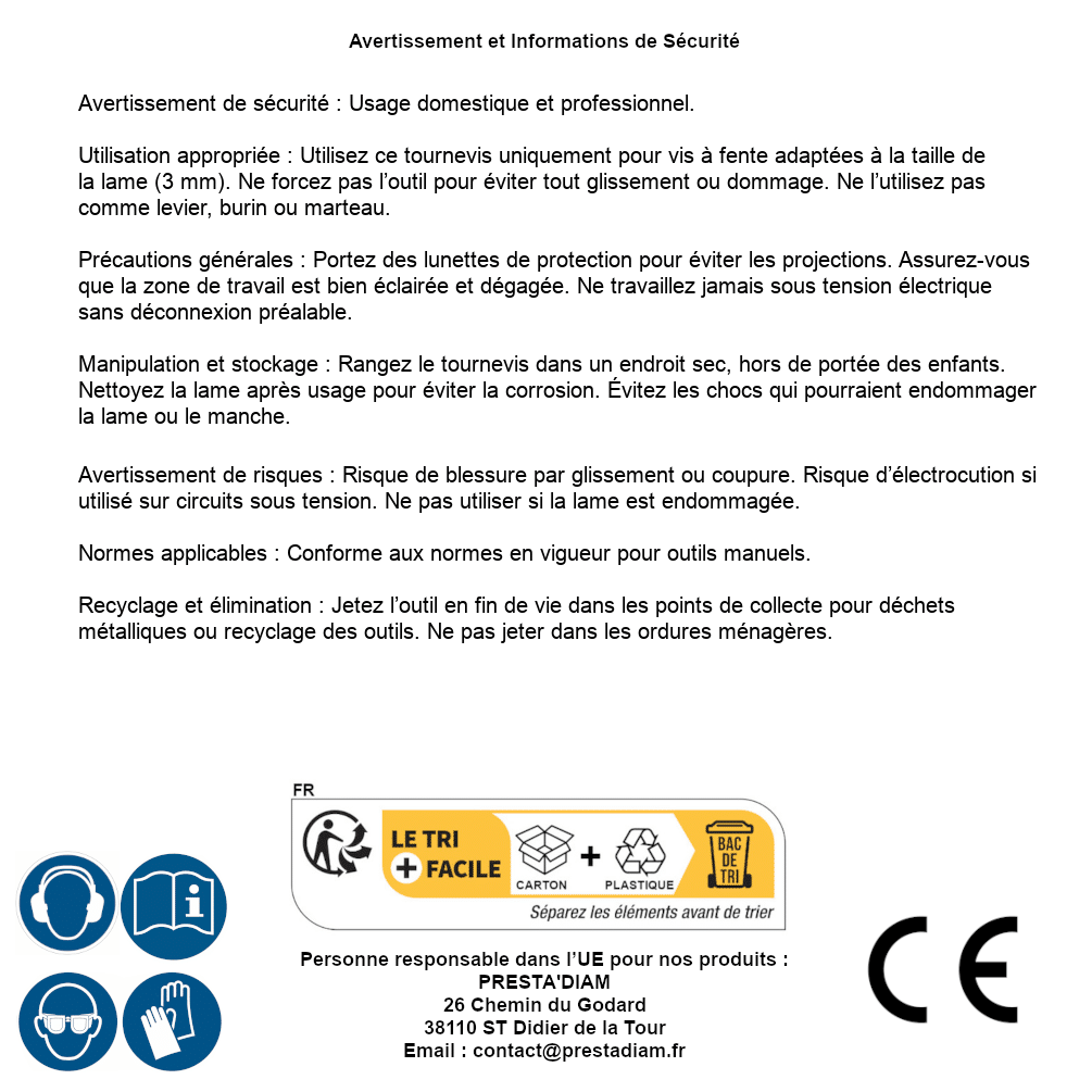 | Persona responsabile UE | PRESTA'DIAM 26 Chemin du Godard 38110 ST Didier de la Tour Email : contact@prestadiam.fr |