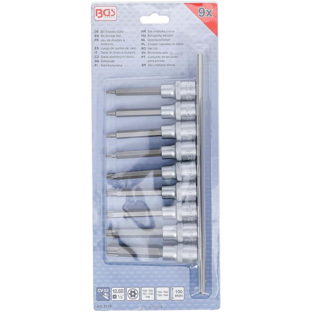 Jeu de Douilles 12,5 mm (1/2 ) Profil T Torx - 9 Pièces - Acier Résistant et Précis - - BGS