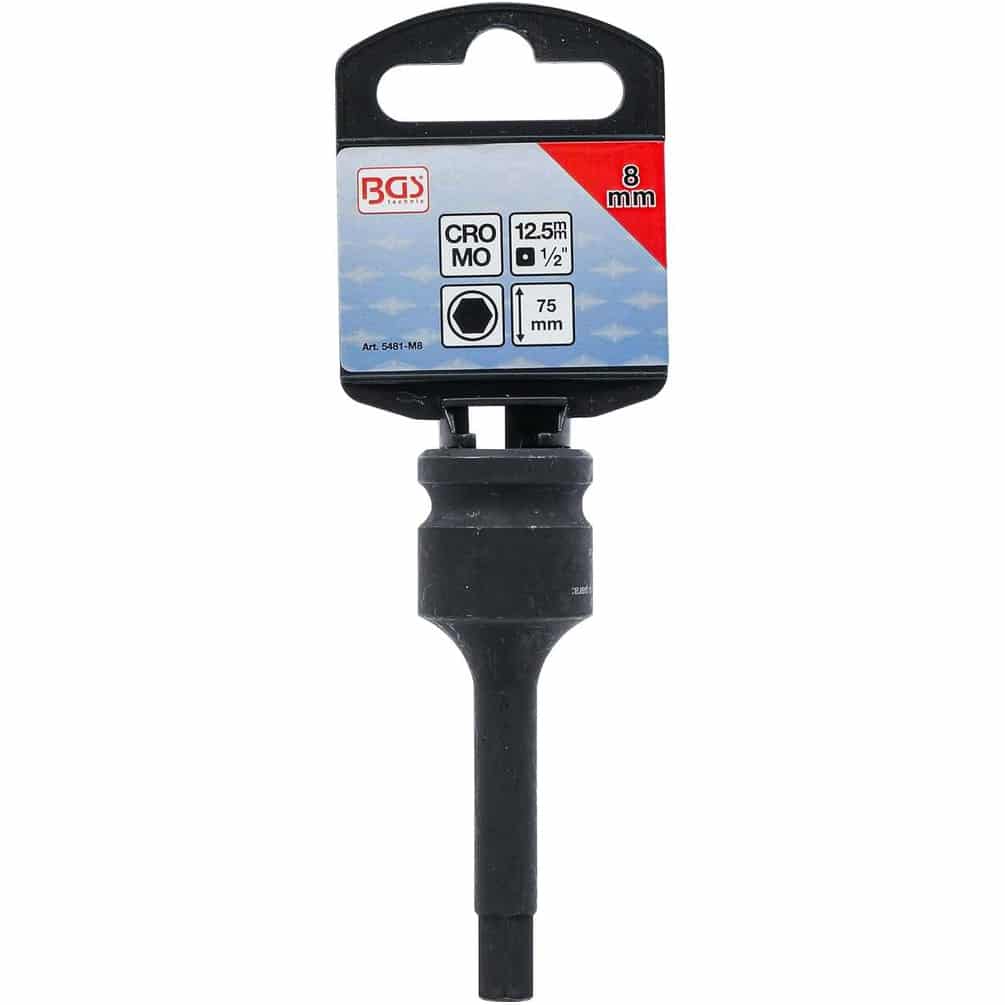 Douille à Embouts à Choc 75 mm - 12,5 mm (1/2 ), Six Pans Intérieurs 8 mm - Résistante et Précise - BGS