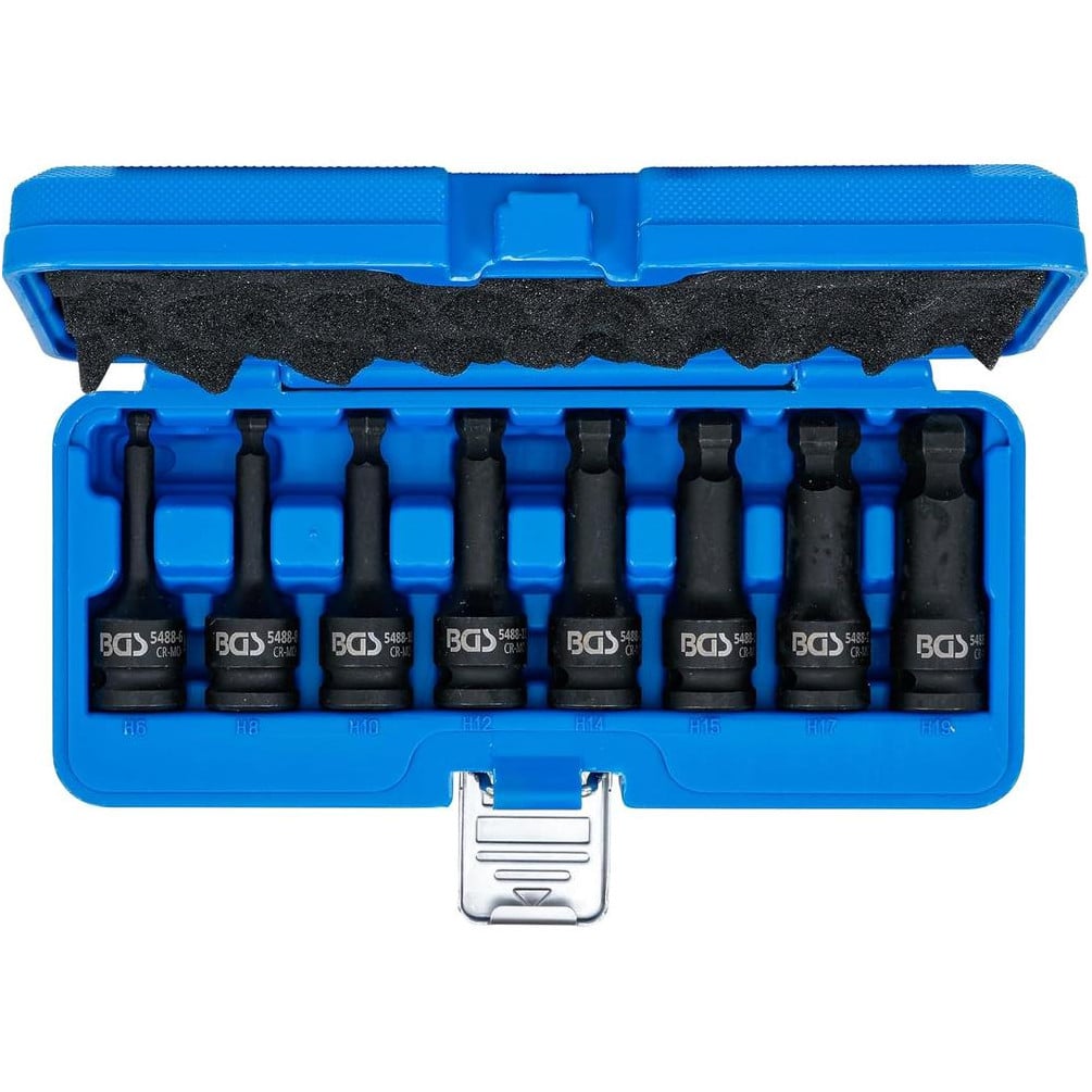 Jeu de Douilles à Embouts à Choc 8 pièces 75 mm - 12,5 mm (1/2 ), Six Pans Intérieurs 6-19 mm - Résistantes et Précises - BGS