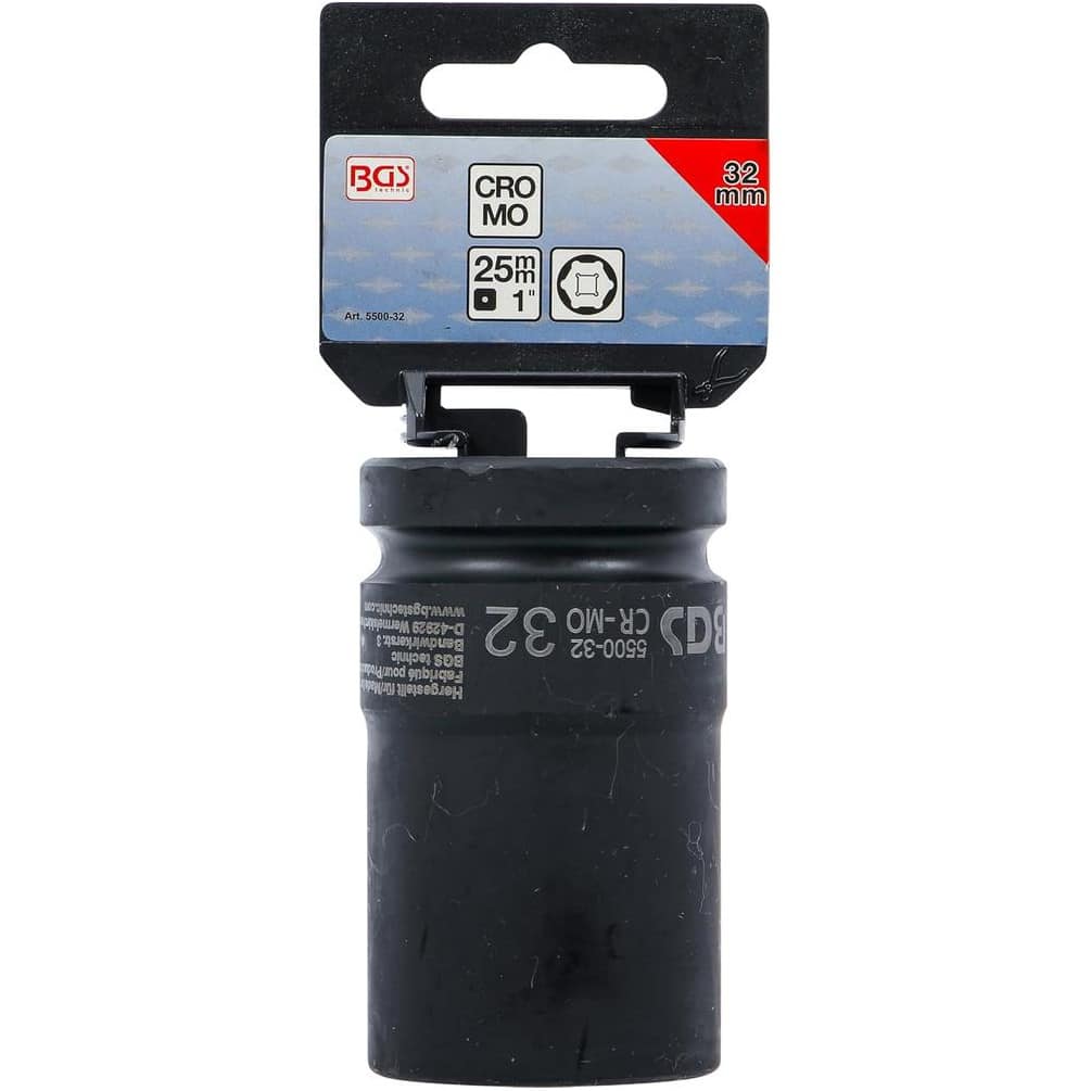Douille à Choc Six Pans Longue 25 mm (1 ) - 32 mm - Acier Résistant - Usage Professionnel et Durable - BGS